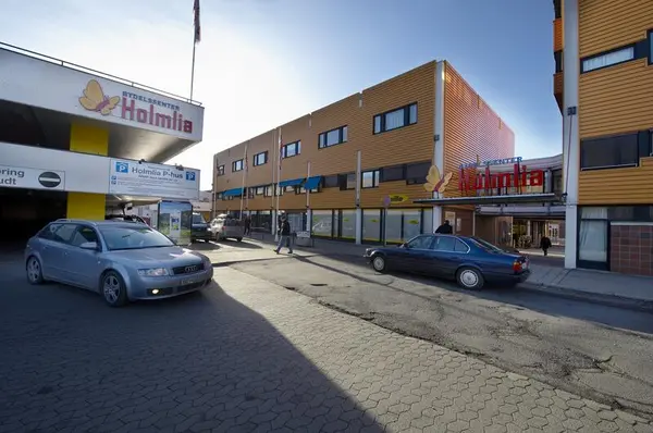 Holmlia senter, parkeringshus, forretningsbygg, biler