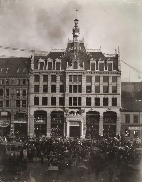 forretningsgård, Christiania Glasmagasin, torg, mennesker, torghandel, vogner, pissoar