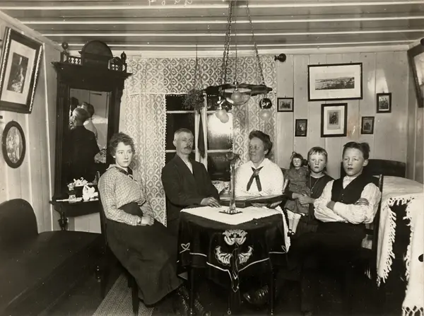 bolig, interiør, stue, kvinner, mann, barn