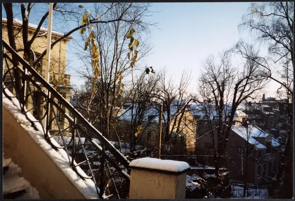villa, verandatrapp, hage, utsikt, villaer, snø