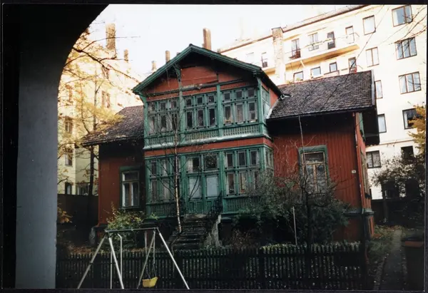 Villaen med adresse Bygdøy allé 26 er sett gjennom portrommet i Frederik Stangs gate 31C.