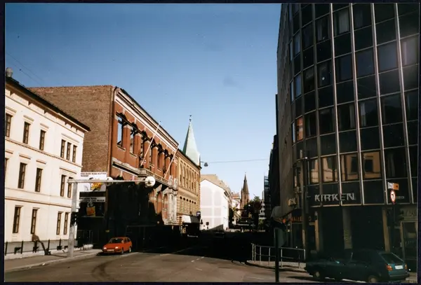 gateløp, bygårder, Turnhallens fasade etter brannen, kontorbygning, Centralkirken