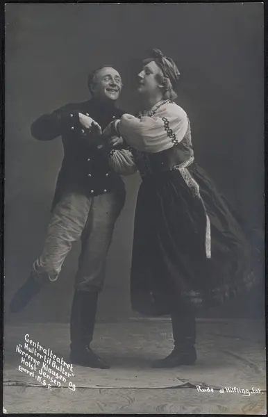 dobbeltportrett, menn, skuespillere, rollebilde, "Hulter til bulter" på Centralteatret, stående helfigur, kostymer