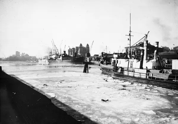 havn, dampbåter, islagt fjord, Tollboden, Oslo Havnelager