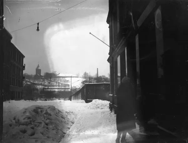 gate, bygårder, kvinne, snø, Gamle Aker kirke