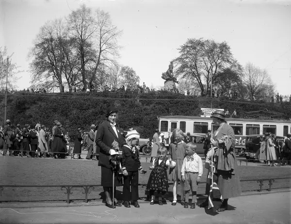17. mai, park, mennesker, trikk, Bærumsbanen, skulptur