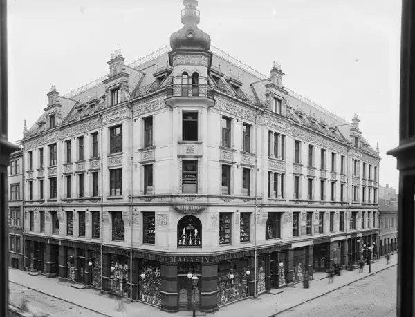 forretningsgård, hjørnegård, John F.A. Køltzow Magasin, utstillingsvinduer, mennesker