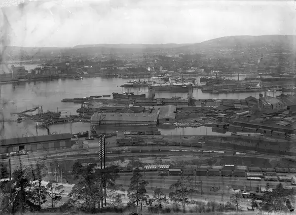 utsikt, havn, by, Nylands verksted, jernbane