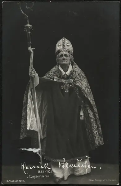 portrett, mann, skuespiller, rollebilde, Bisp Nikolas i "Kongsemnerne" på Nationaltheatret, stående helfigur, kostyme