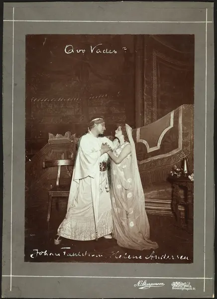 Fahlstrøms Theater, scene, mann, kvinne, skuespillere, rollebilde, "Quo Vadis?", stående helfigur, kostymer
