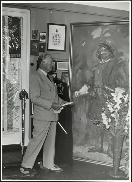 Formann i Norsk Skuespillerforbund, David Knudsen ved Henrik Lunds maleri av Egil Eide i rollen som James Hepburn, Jarl av Bothwell i "Maria Stuart i Skotland" på Nationaltheatret (1904).