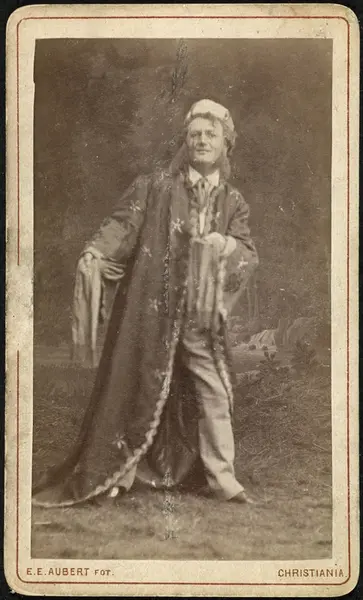 portrett, mann, skuespiller, rollebilde, Peer Gynt på Christiania Theater, stående helfigur, kostyme