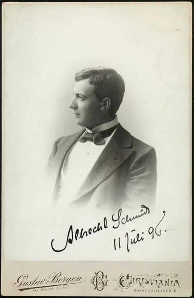 Påskrift på baksiden: "Kære Hr. Bjørn Bjørnson! Tak for alt i de to Saisoner jeg virkede under Deres Instruktion med det Teater som, for mig, er det "eneste" i Danmark. deres alltid hengivne Albrecht Schmidt."