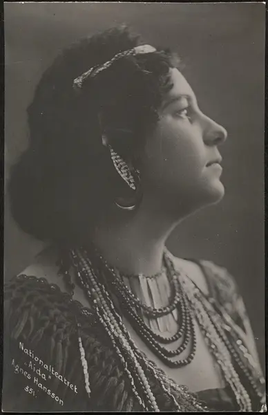 portrett, kvinne, operasangerinne, rollebilde, tittelrollen i "Aida" på Nationaltheatret, brystbilde, profil, kostyme