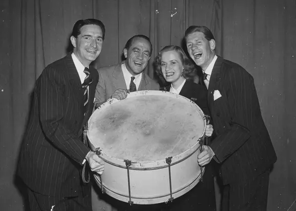 Jens Book Jensen, Arvid Nilssen, Aud Schønemann og Arve Opsahl med stortromme.