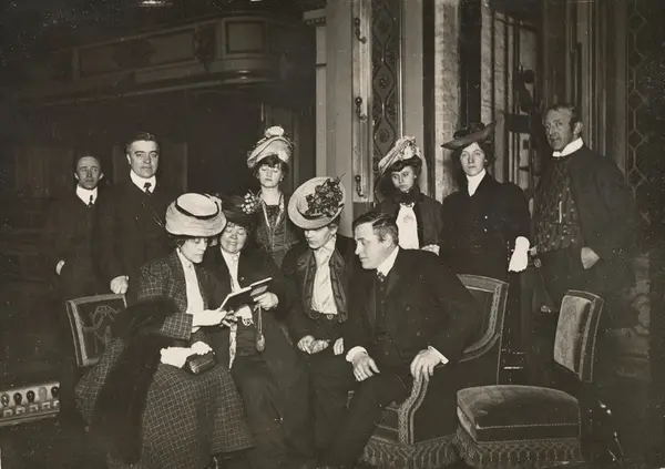 teater, interiør, gruppe, kvinner, menn, skuespillere, Fahlstrøms Teaters gjestespill i København