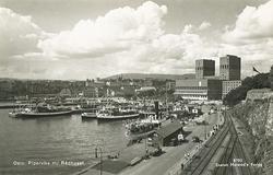 Pipervika med Rådhuset sett fra Akershus... Fotograf Mittet & Co – 1950