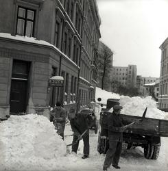 Oslo veivesen rydder snø i Industrigaten... Fotograf All-Foto – 1955 – 1959