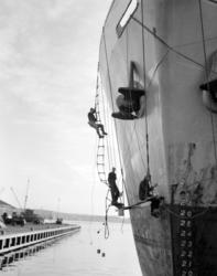 Havna. Maling av skip. "Matima" blir mal... Fotograf Ukjent – 1960