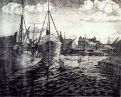 Fra Oslo Havn [radering] Kunstner Kalmer, Kristian – 1937