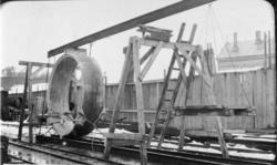 Avløpsrøret i tre innen nedsenking utenf... Fotograf Ukjent – 1931