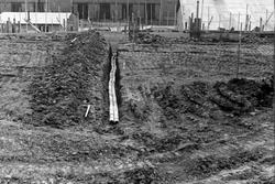 Konstruksjon av råtobakklageret til Tied... Fotograf Ukjent – 1978