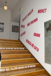 Under lukene på veggen kan man kan lese ... Fotograf Reinsfelt, Anne-Lise – 2012