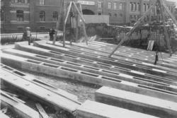 Støping av betongblokker under utbygging... Fotograf Skarpmoen, Narve – 1917