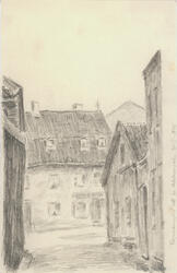 Hjørnet Elvegt. - Søberggangen [blyantte... Kunstner Blix, Peter Andreas – 1895