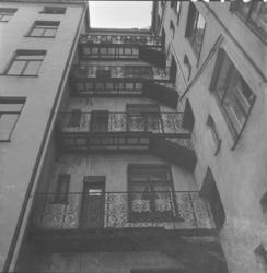 bygård, bakside, gårdsinteriør, vinduer,... Fotograf Ørnelund, Leif Krohn – 1975