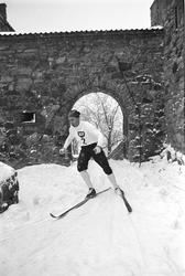 Skiløper i løypa rundt Akerhus slott. Sl... Fotograf Brun, Johan – 1965