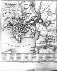 Oslo. Kart tegnet av Carl B. Rosen 1843.... Fotograf Ukjent –