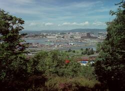 Utsikt mot Grønlikaia og Vippetangen. Fotograf Hart, Kim – 1980