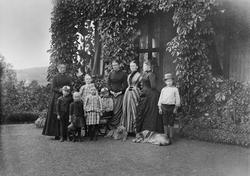 familiegruppe, kvinne, jenter3, gutter2,... Fotograf Maartmann, Hans – 1895