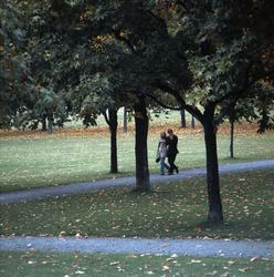 park, gangvei, mann, kvinne, høstløv Fotograf Ørsted, Henrik – 1965 – 1970