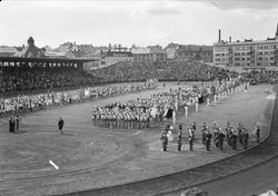Musikkorps på Bislett stadion. Fotograf ukjent person – 1945 – 1950