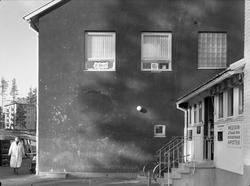 Sinsen apotek, eksteriør, vindu, inngang... Fotograf Ørnelund, Leif Krohn – 1955