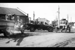 Biler foran Holtet bildepot. Fotograf Ukjent –