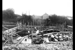 Grunnmur til Lilleaker stasjon, utbyggin... Fotograf Skarpmoen, Narve – 1917