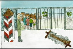 Tegning av Randi Lind, Sagene skole unde... Fotograf Ukjent – 1944