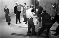 Kamerafolk i aksjon under opptak av TV-p... Fotograf Brun, Johan – 1960