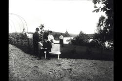 Situasjon i park: en mann på benk, to kv... Fotograf Ukjent – 1905