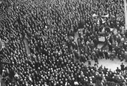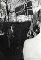 Rolf Forsberg taler foran Stortinget. De... Fotograf Eyjolfsson – 1934