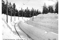 Trikkelinje i et snødekket skog. Til ven... Fotograf Wilse, Anders Beer –