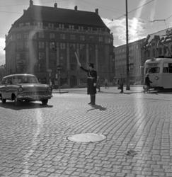 Kvinnelig politikonstabel dirigerer traf... Fotograf Harm, Sølve – 1960 – 1965