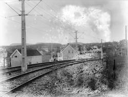 Slemdal stasjon, stasjonsbygning, trikk Fotograf ukjent person – 1905