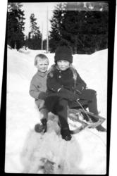 Julius Sundt sitter på kjelke sammen med... Fotograf Sundt, Rolf Sr. – 1922