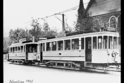 Bilde av en av de første Trikk, med fler... Fotograf Ukjent –