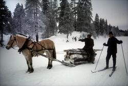 Tømmertransport med hest ved Store Åklun... Fotograf Hart, Kim – 1990