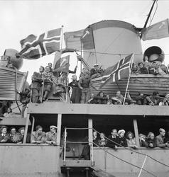 AUF-medlemmer på vei til leir i Danmark.... Fotograf Ørnelund, Leif Krohn – 1947